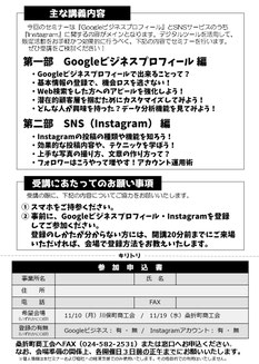 「ホームページが無くてもラクラク情報発信!Googleビジネス&SNS活用セミナー」
